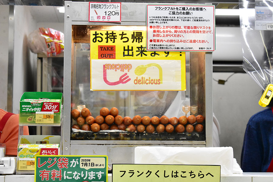 さらに、駅のホームという限定された場所で販売するため火や油を使った料理は難しいということで、ホットプレートを使って手軽に調理できるフランクフルトに決まったらしい。ちなみに、昔は「淀屋橋駅」などでも違う種類のフランクフルトが売られていたが、利用者が多い「京橋駅」だけが残っていったという。