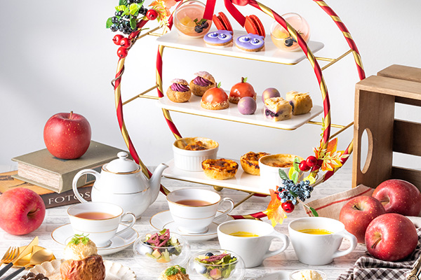 フォーシーズンズホテル京都平安末期から歴史を紡ぐ庭園を臨みながら、秋風を感じつついただける和・洋コラボティーセットは、秋の果物を芸術品のように仕立てたタルトが主役。