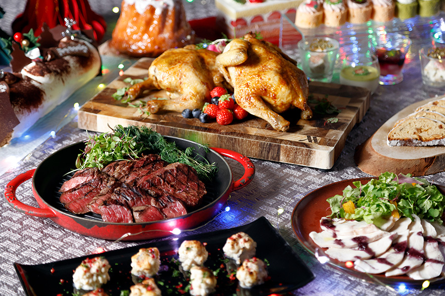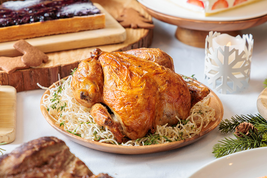 タイ発祥のホテルでは、和食、洋食に加え、本格タイ料理を食べることができる。クリスマス定番のチキンも、タイ風の味付けで登場する。