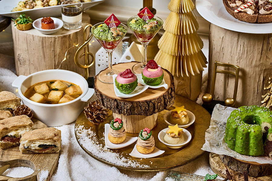 スイーツが種類豊富な「アフタヌーンブッフェ」と、平日限定の「ランチブッフェ」を展開する。アフタヌーンブッフェでは、フランス出身のシェフ・フレデリック氏が手がける、スイーツ18種類が登場。ヨーロッパのクリスマスの定番が味わえるラインナップとなっている。