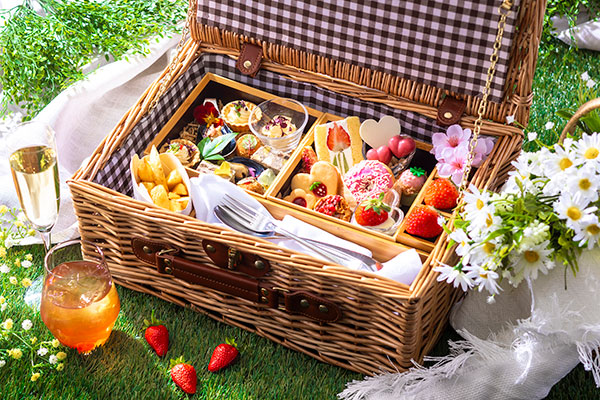 [京都・京都駅]チューリップのような断面の苺サンドに苺模様のジャムがあしらわれたクッキーなど、バスケットの中に詰まった可愛いスイーツに、高まるピクニック気分。