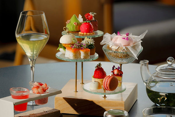 [京都・東山]苺を贅沢に味わえるスイーツに九条ネギや丹波鶏など京都食材を使ったセイボリーがならぶ。穏やかな池庭を臨みながら優雅なひとときを。