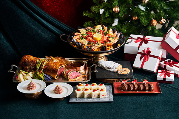 [京都駅]牛肉のパイ包み焼きや、スペイン産生ハム「ハモンセラーノ」、豊富なスイーツなど、クリスマスにぴったりの特別感あるメニュー70種類以上が並ぶ。
