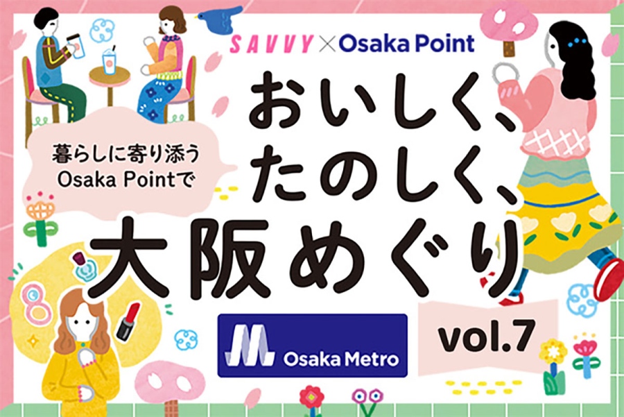 Osaka Metroのポイントサービス・Osaka Pointと月刊誌『SAVVY』による「大阪めぐり」企画。極上のリラックスタイムを体験できるリラクゼーションから、ランチやディナーなどの食事、ファッションや雑貨のお買い物まで、関西で暮らす私たちの暮らしに身近で、気軽にOsaka Pointが利用できるお店を毎月ご紹介します。