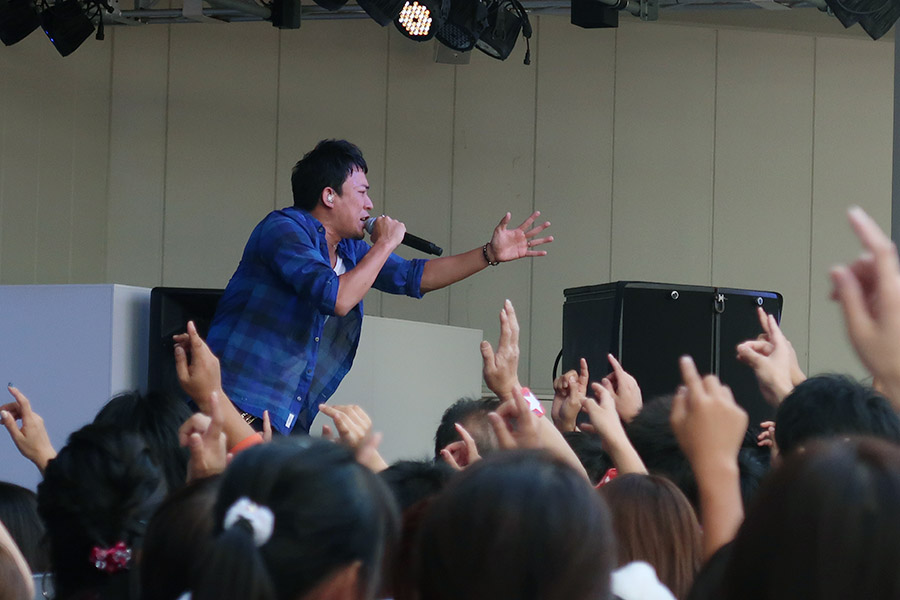 DJ遠藤淳とのトークでは、「以前番組で、応援ワードが出尽くしそうって言ってらっしゃったんですけれど」と遠藤が振ると、「だんだん人を励ますことがなくなってきたんですよ。10年間応援ソングを作り続けているとなくなってくるんですよね。人を励ますワードのストックを、前々回のシングル『中途半端なスター』で出し尽くした。でも、書いていたら出てくるもんで、今、ちょっとずつ励ましワードを増やしつつあります」と観客を安心させた。ほかにもアルバムや今後の活動について語り、トークの模様はFM OSAKA『遠藤淳のYou’ve Got a Radio!』で10月17日に放送される。