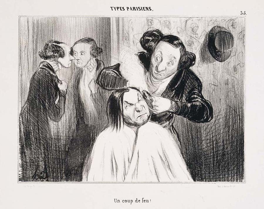 マルセイユのガラス職人の息子として生まれたドーミエは、8歳のときに一家でパリに移転、14歳で当時最新技術の石版画を学びはじめる。やがて気鋭の編集者シャルル・フィリポンに見いだされ、『カリカチュール』『シャリヴァリ』といった絵入り諷刺雑誌に寄稿し、政治諷刺を中心に腕をふるった。