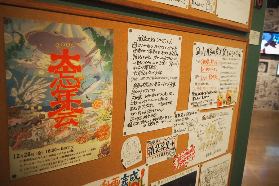 • スタジオジブリ社内も貼られた貼り紙。「大忘年会」「尻相撲大会」などイベントが多いそう (C)Studio Ghibli