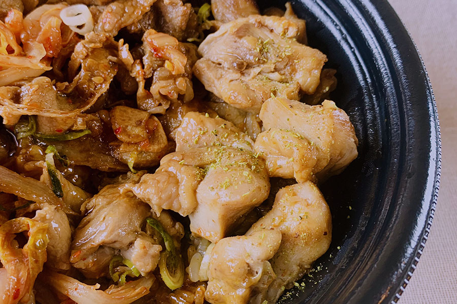 • タレと自らの脂がミックスされ、てらてらと光る豚肉