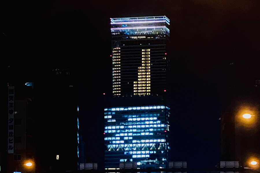 日本一高いビル「あべのハルカス」(大阪市阿倍野区)が5月22日から、スマイル(にこちゃん)デザインの客室ライトアートを期間限定で開始した。