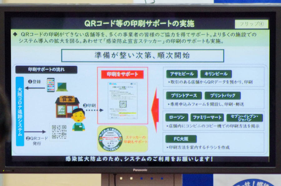 本システムの空メールシステムは7月31日から、「大阪マイル」は8月17日から運用が開始。また、プリンタがない店舗にはQRコードや感染防止宣言ステッカーなどの印刷サポートも実施される。