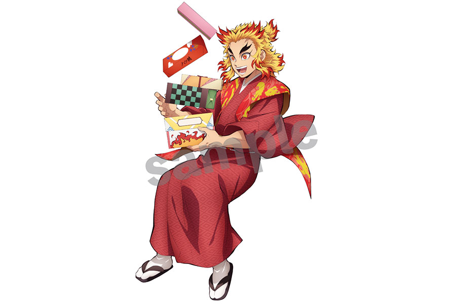 描きおろしとして京都らしさを満喫する、竈門炭治郎と妹の禰豆子、我妻善逸、素顔の嘴平伊之助、映画でも重要な位置を占める煉獄杏寿郎が等身大のイラストに。また柱を含む17人のミニキャラが登場予定。これらが描かれたコラボグッズは、前回の時点でも人気だったが、今回はそれ以上となることが予想される。