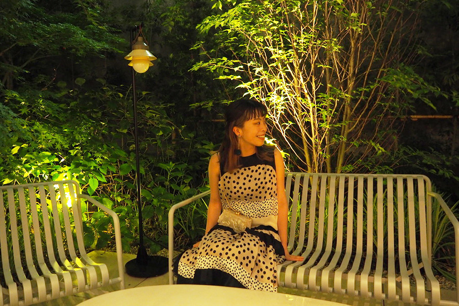 • テラス(1F)は草花が多く気持ちの良い空間で、朝はもちろんディナー後のリラックスタイムにも最適