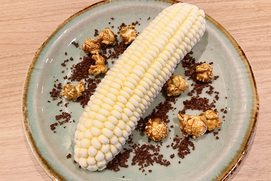 • 韓国では昔から親しまれているトウモロコシアイスをデザートにブラッシュアップ。トウモロコシ味のアイスクリームのまわりにはクランチチョコとキャラメルポップコーンを散らし、畑でとれた新鮮なとうもろこしをイメージ。990円