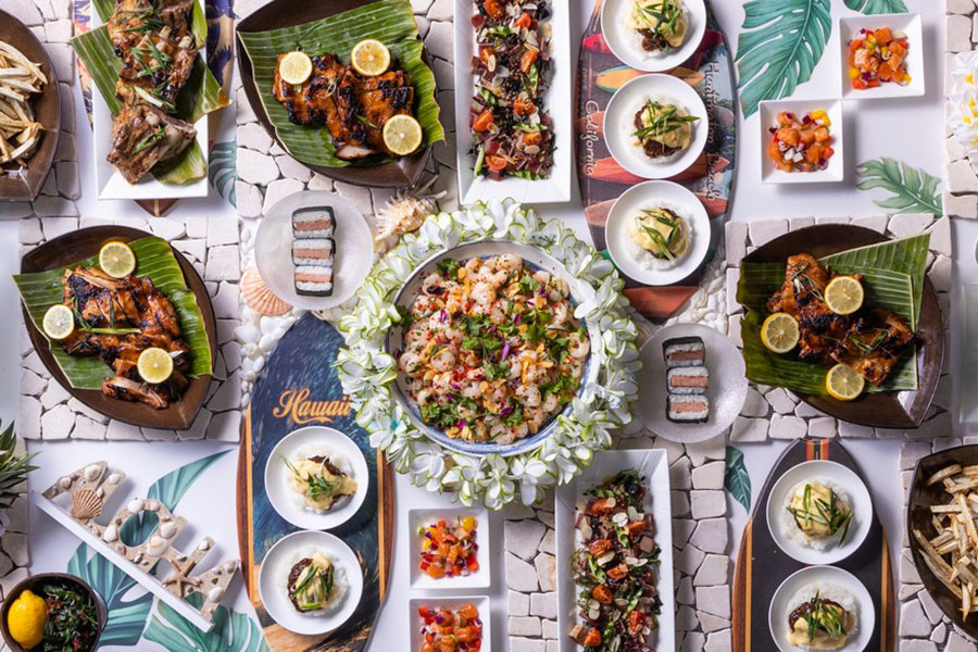 さらに、ロコモコやガーリック・シュリンプ、ロミロミサーモンといったフード10種もスタンバイ。現地で定番の味が勢揃いする。