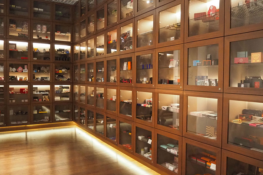 2021年10月にオープンし、これまで約2万人が訪れたという神戸の通販会社「フェリシモ」による同館。壁を埋め尽くすように収蔵展示されている約50カ国のチョコレートパッケージが圧巻で、開館後もメーカーや愛好家らからの寄贈寄託が増え続け、今では約500ブランド・約1万3000点にも及ぶという。