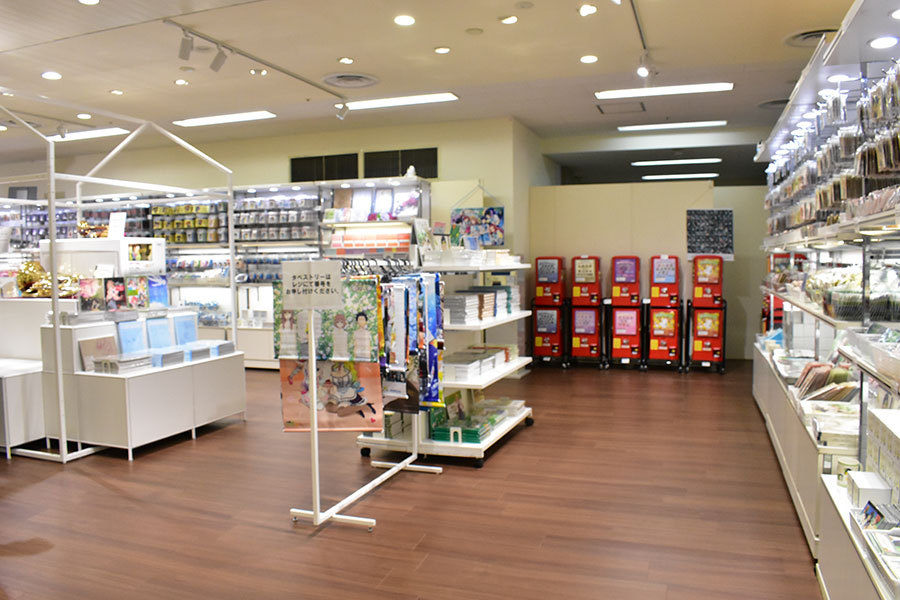 店舗には『けいおん!』『涼宮ハルヒの憂鬱』、『Free!』をはじめとし、人気作品のアクリルスタンドやクリアファイル、シャツといった各種グッズがずらり。普段は各地のアニメショップに設置されているカプセルトイも、「出張所」として一挙に集結。