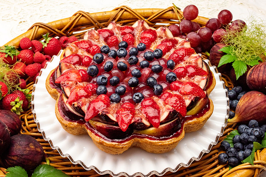 サワークリームを合わせたカスタードクリームや大きめにカットしたイチジクなどをパイに重ねた「イチジクのタルト 〜ショートケーキ風〜」(1ピース・907円)や、イチジクのほかに葡萄やベリーなどを使った爽やかな「波型 5種のフルーツとイチジクパウンドのタルト」(1ピース・1058円)など、全4種がラインアップ。