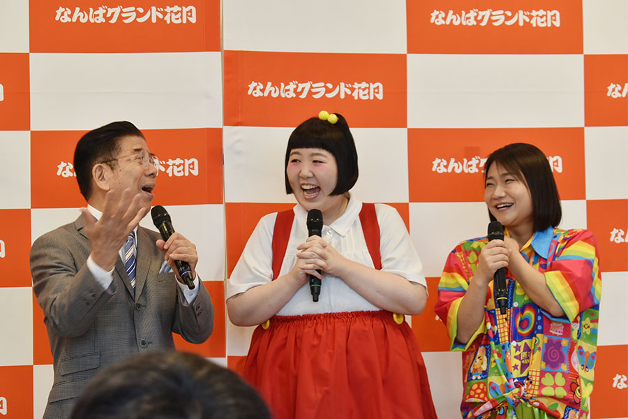 • なんばグランド花月の38周年イベントについて説明する西川きよし、酒井藍、島田珠代(10月28日 Lmaga.jp撮影)