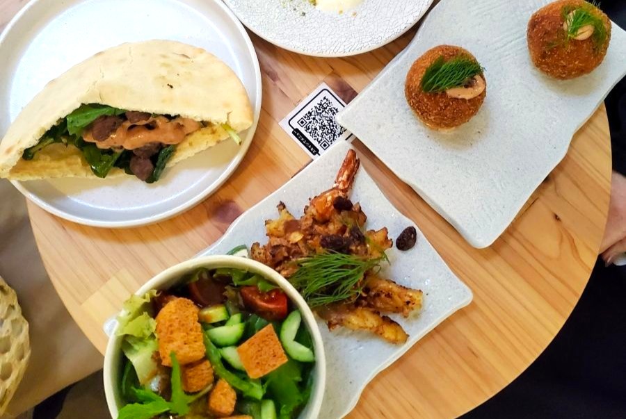 • 写真左上の「ティッカローストビーフサンド」(3200円)はデーツマヨネーズを使用した日本にはない味付け(大阪・関西万博 /Lmaga.jp編集部撮影)