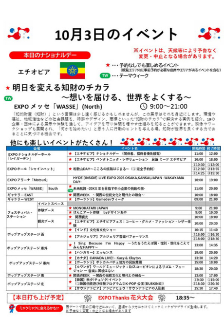 ■『大阪・関西万博』10月3日(金)のイベント・チケット情報など