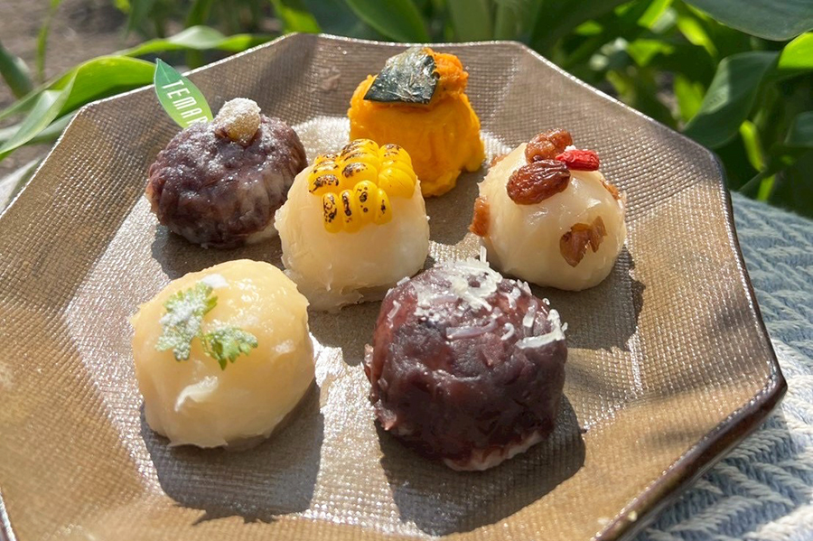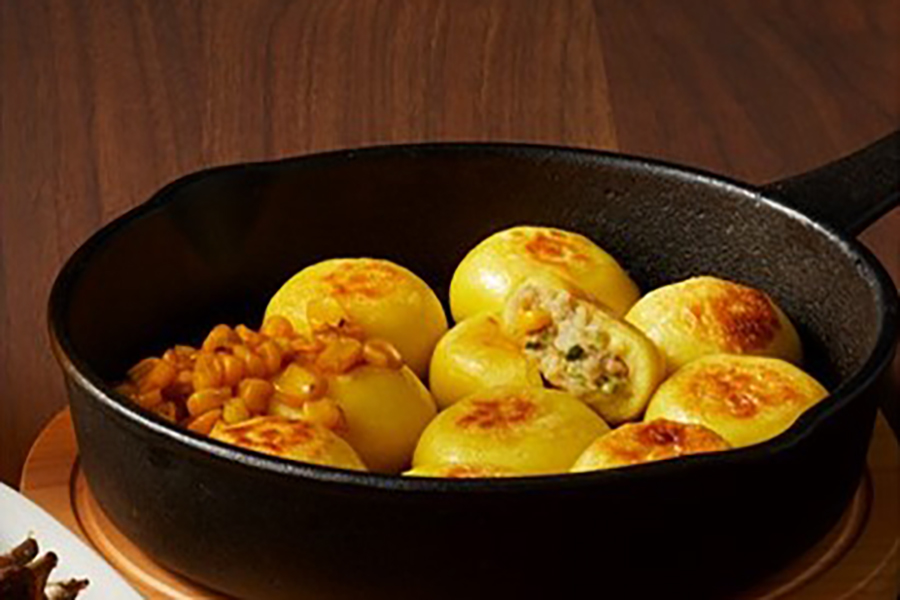 会場では、とうもろこし・じゃがいも・かぼちゃなど素材の味を生かしたアテが勢ぞろい。「餃彩(チャイ)」のバター醬油とうもろこし餃子(6個810円)や、「北円山まるしぇ」のキーマカレーピザ(1枚1481円)、「帯広串〇」のとうきび(1串540円)など野菜が主役のメニューが並ぶ。