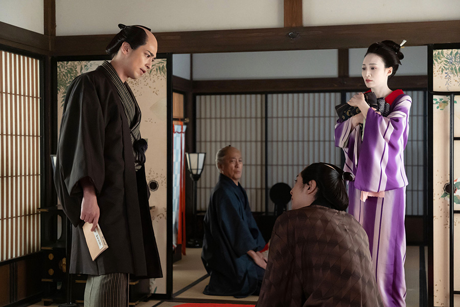 そこで政演が折衷案という感じで出してきたのが、政の風刺とは方向を変えた、吉原の女郎と遊客の実態を描いたドキュメンタリー的な一冊『傾城買四十八手』だった。吉原のことをよく知らない手代・みの吉(中川翼)だけでなく、前旦那が遊郭遊びに狂い、吉原に恨みを持っているていすらも「この女郎さんを応援したい」と語るほど、中身の濃い一冊となった。重三郎のプレッシャーが、思わぬ方向に転がった瞬間だった。