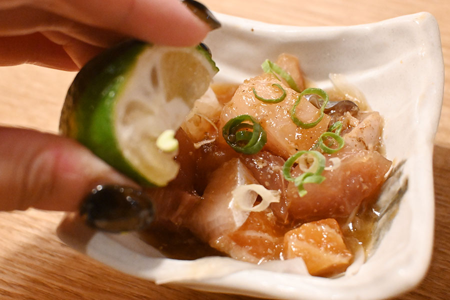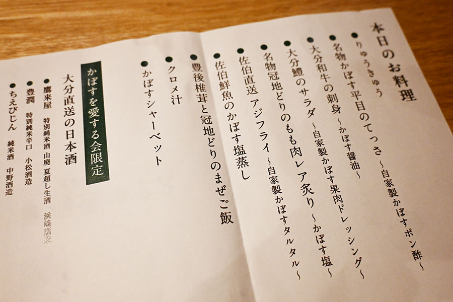 大分県食材を楽しめる「とよの本舗 元町旧居留地店」でおこなわれたイベントでは、大分の郷土料理である「りゅうきゅう」をはじめ、「名物かぼすヒラメのてっさ〜自家製かぼすポン酢〜」「おおいた和牛の刺身〜かぼす醤油〜」「大分鱧のサラダ〜自家製かぼす果肉ドレッシング〜」「名物冠地どりのもも肉レア炙り〜かぼす塩〜」「佐伯直送アジフライ〜自家製かぼすタルタル〜」など、かぼす尽くしの料理が続々登場。参加者は卓上に置かれたかぼすを一品一品に贅沢に絞り、大分の地酒とともに堪能していた。
