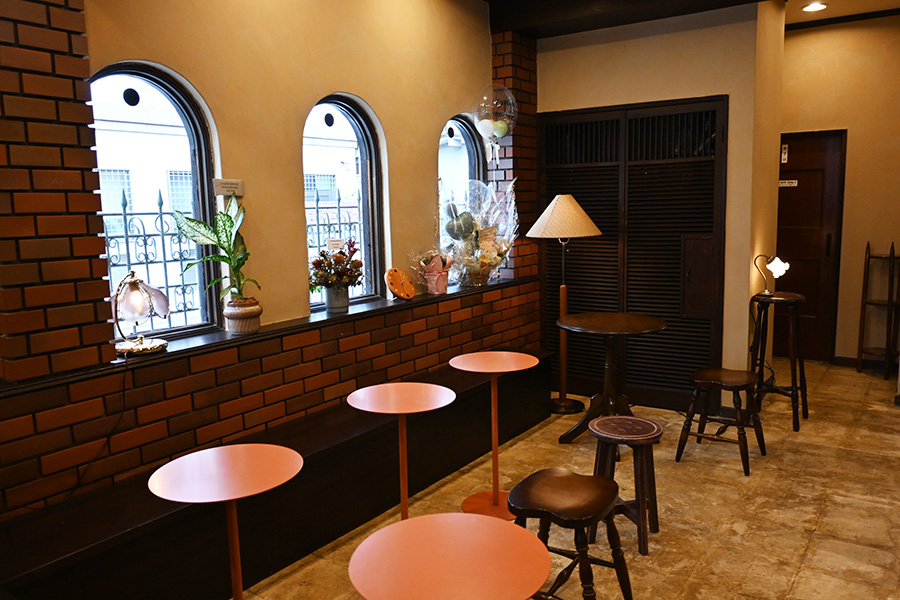• 「クレープ喫茶えんどう南田辺店」内観。家具は近所の骨董品店などで新調