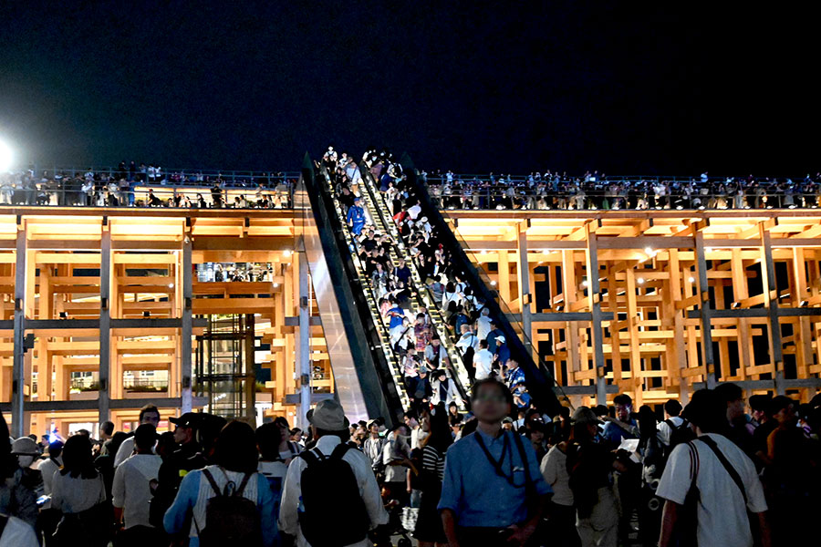 多くの人で賑わう『大阪・関西万博』の大屋根リング(10月2日・20時頃/Lmaga.jp撮影)