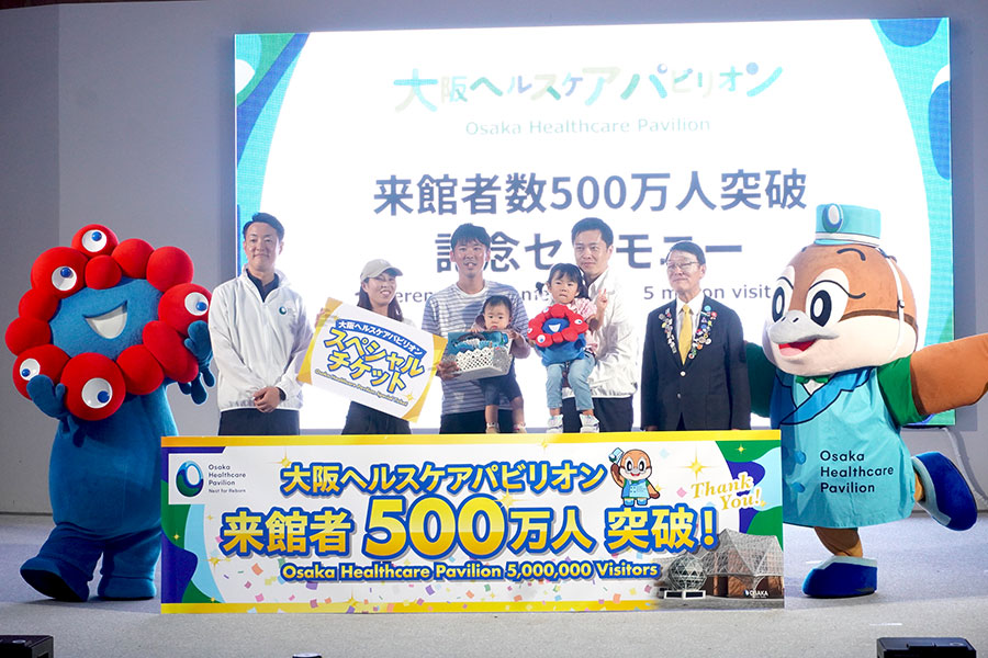 『大阪・関西万博』(会場:夢洲)の「大阪ヘルスケアパビリオン」の来場者数が、10月2日に500万人を突破。それを記念して同日午後に、パビリオン内「リボーンステージ」にてセレモニーがおこなわれた。