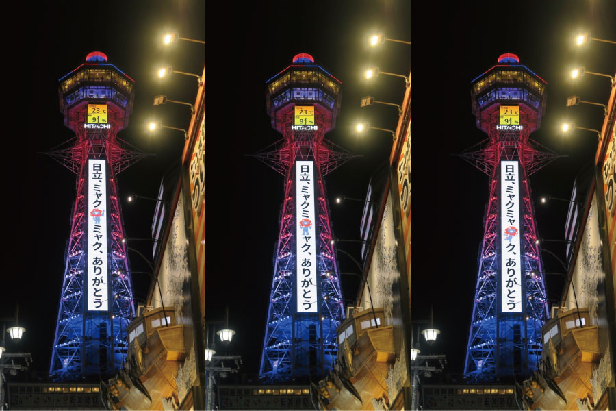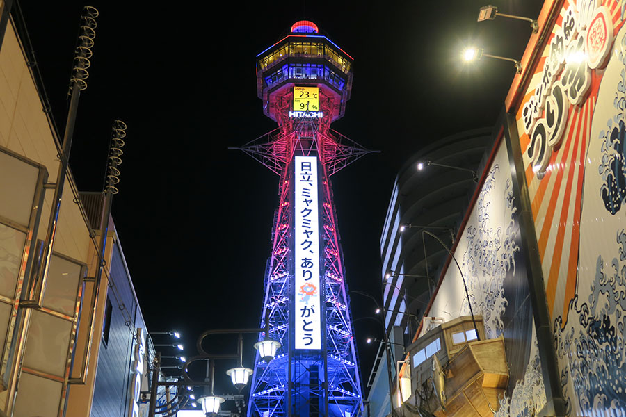 大阪のシンボル「通天閣」(大阪市浪速区)は、10月1日から電子看板のメッセージを変更。万博やミャクミャクへの感謝の気持ちを込めた特別バージョンを見ることができる。