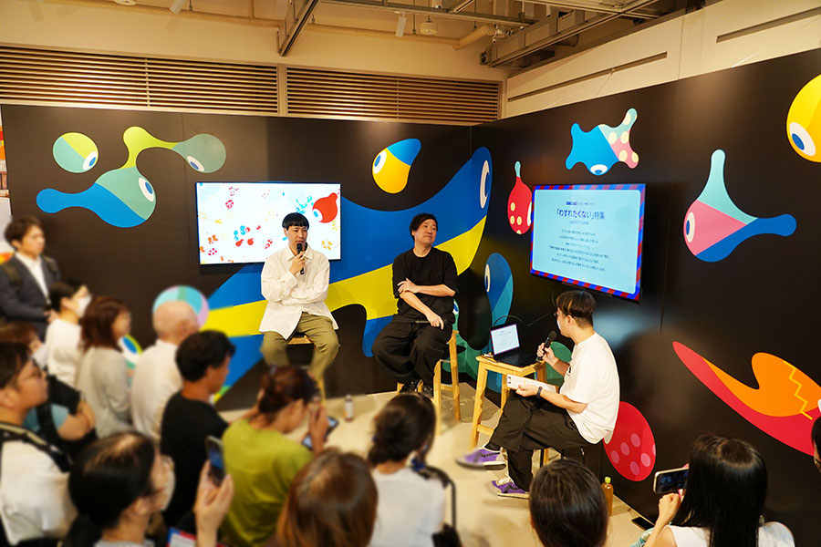 そのほか、大阪会場から始まった試みとして、毎日18〜19時ごろからおこなわれるトークプログラム「EXPO DESIGN TALK」も必見だ。同展を開催し、万博にも携わるコンテンツ制作会社「人間」の花岡さんや万博のデザインシステムを手がける引地耕太さんをはじめとしたクリエイターが登壇し、万博の裏話を語る(回によって有料の場合あり)。