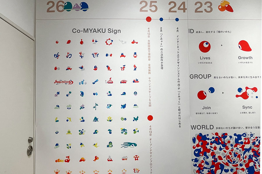 また、大屋根リングや会場の各所を彩っていた「Co-MYAKU Sign」や、アーティストたちによるポップアートもパネルで展示。「メロディのこみゃく」や「きりのこみゃく」など会場内のこみゃくたちに込められたメッセージや小ネタも明かされ、思わず「そうだったのか!」とその奥深さに驚くはず。