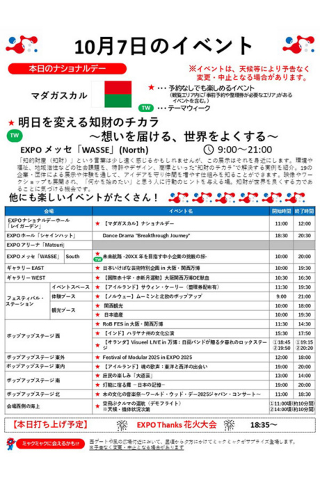 ■『大阪・関西万博』10月7日(火)のイベント・チケット情報など