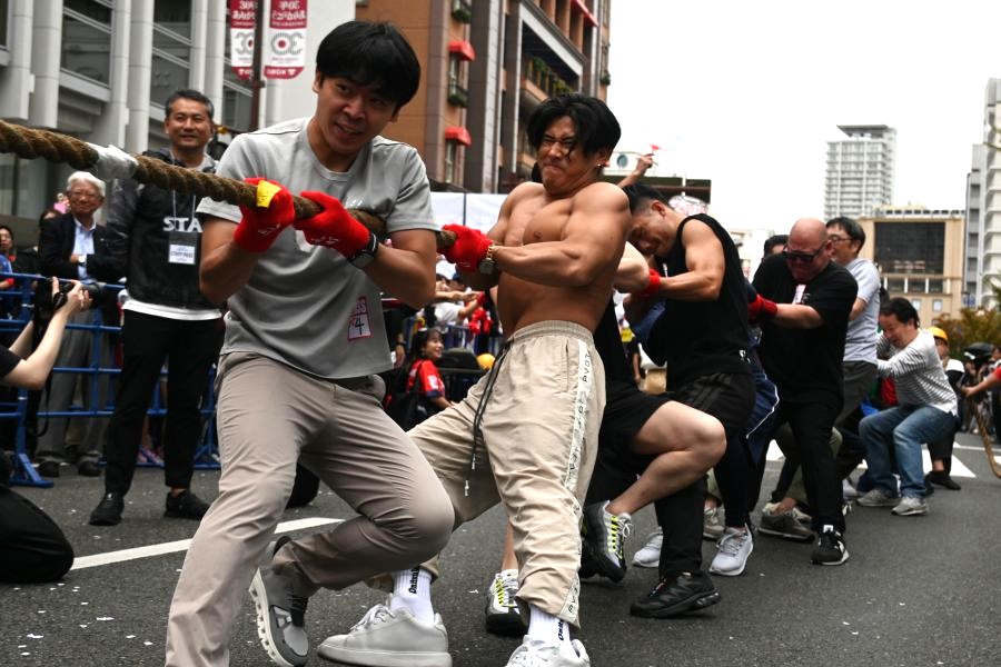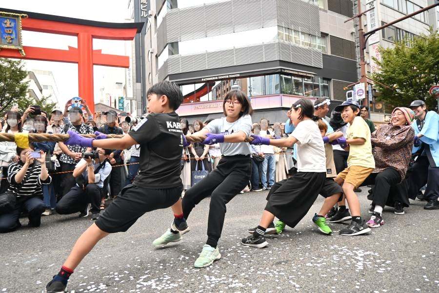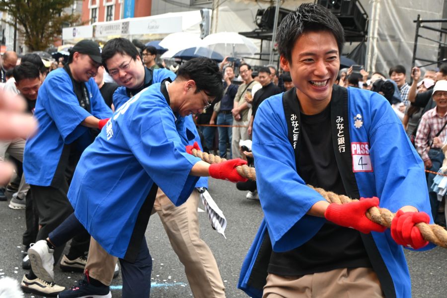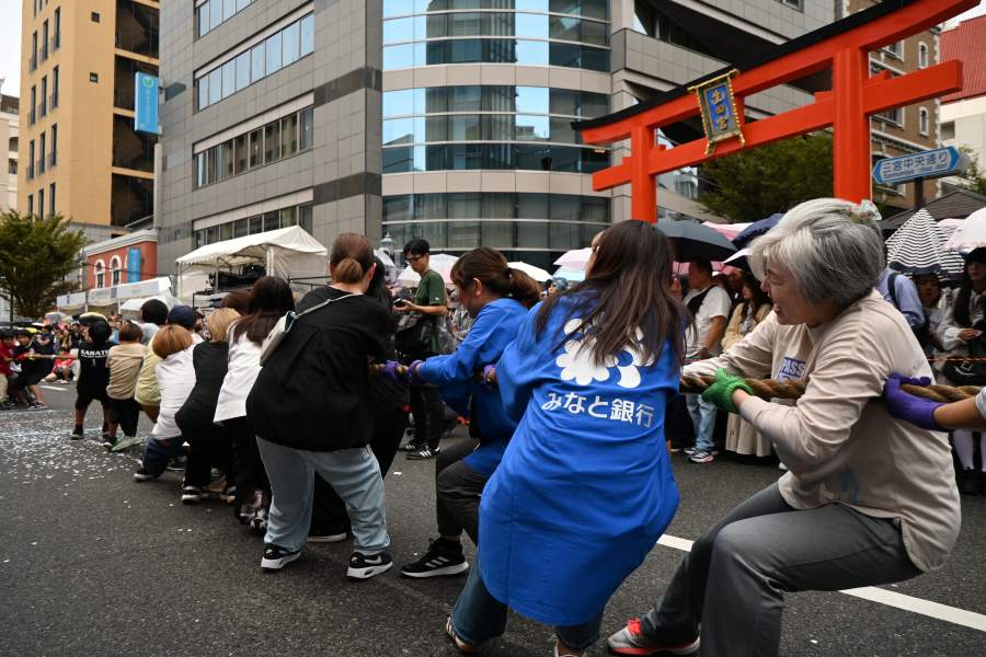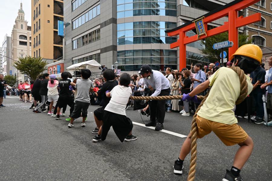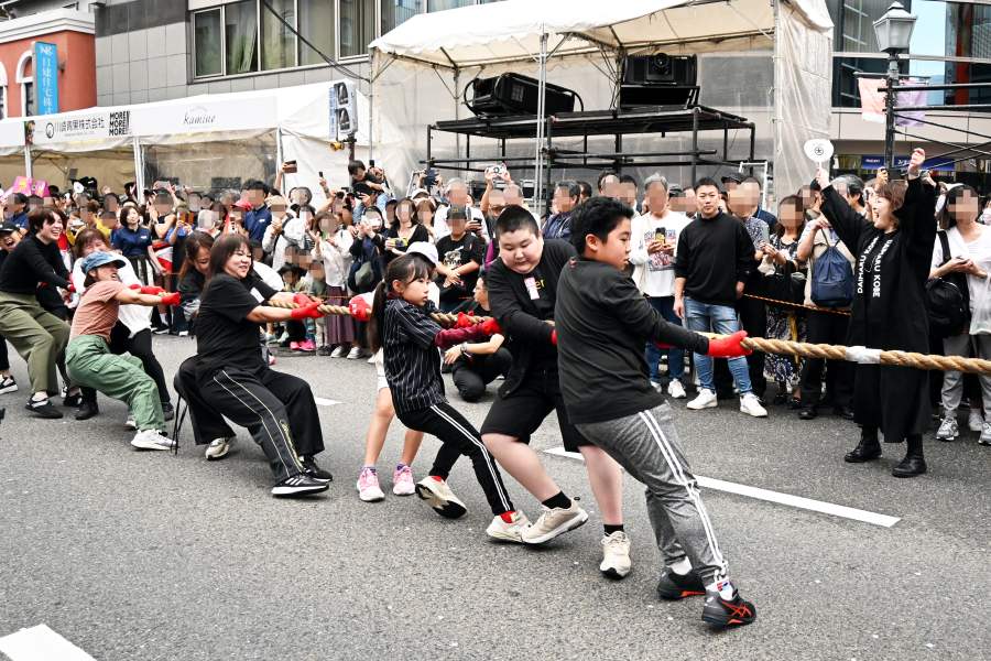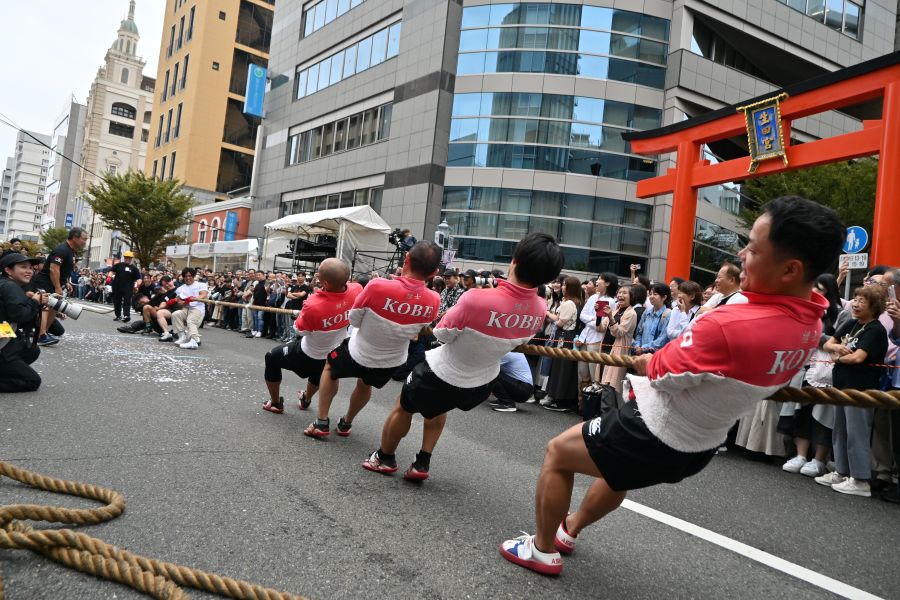 神戸・三宮中央通りを歩行者天国にしたイベント『第4回KOBE AUTUMN FESTIVAL』が、10月4日に開催され、この「綱引き」はそのプログラムのひとつ。