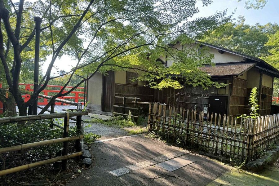 「北野天満宮」は、豊臣秀吉が「北野大茶湯」を開いたとされる場所。その境内にある、通常非公開の「茶室梅交軒」にて、今回レポートした『electronic evening』の、拡張版の「茶会」である『声涼絡緯』を開催する。