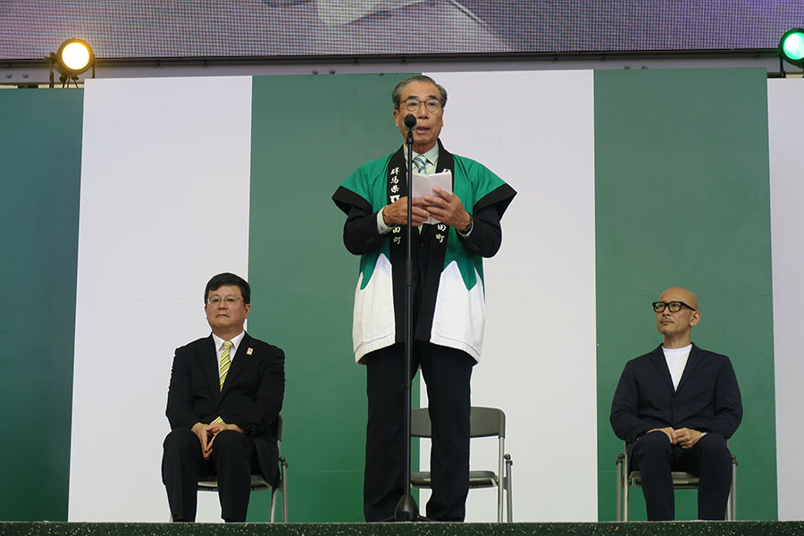 また、「このような背景をもつ我が故郷も、現在は過疎化が進み様々な課題に直面している。大阪のような水族館や観覧車などもない。あるのは数百年前から変わらぬ険しい山々、鮎の住む清流、そして星空と静寂という原風景です。そんな日本古来の風景を守り続ける地域として自負と希望を胸に、この作品を次の世代へと受け継ぐ覚悟を持ち、名乗りをあげさせて頂きました」と力強くスピーチした。