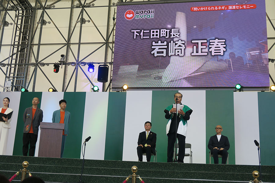 代表としてセレモニーに出席した下仁田町長・岩崎正春氏は、「下仁田ネギは江戸時代には大名の贈答用として重んじられ歴史を刻んできた。ネギは単なる農産物ではなく、大地に根差した文化であり、先人達から受け継いだ誇り」と説明。