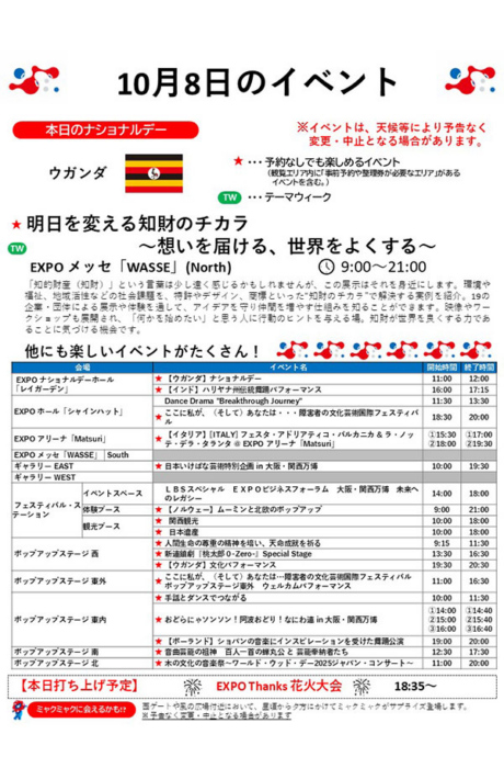 ■『大阪・関西万博』10月8日(水)のイベント・チケット情報など