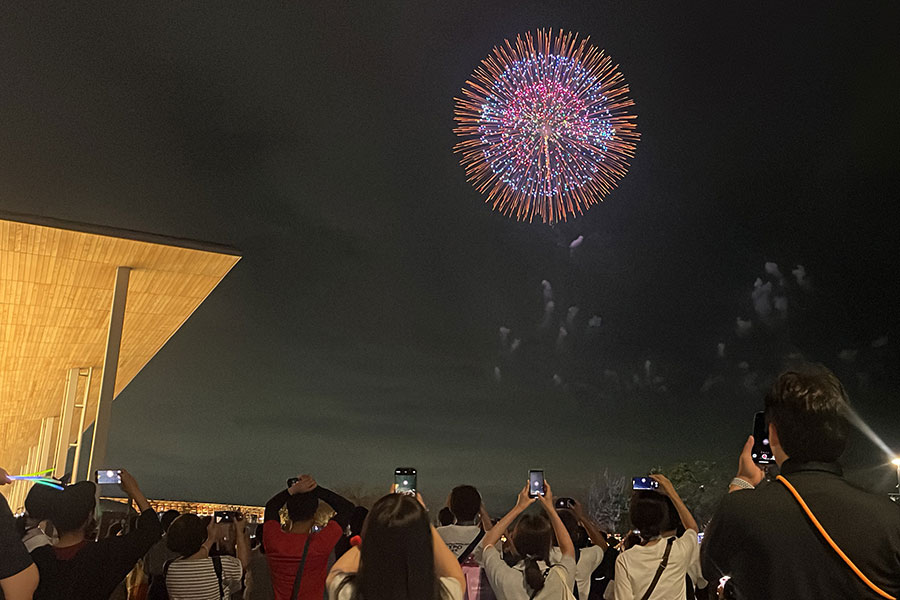 『大阪・関西万博』花火の打ち上げを待つ人々(10月11日・18時半/Lmaga.jp撮影)