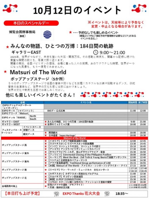 ■『大阪・関西万博』10月12日(日)のイベント・チケット情報など