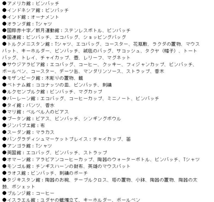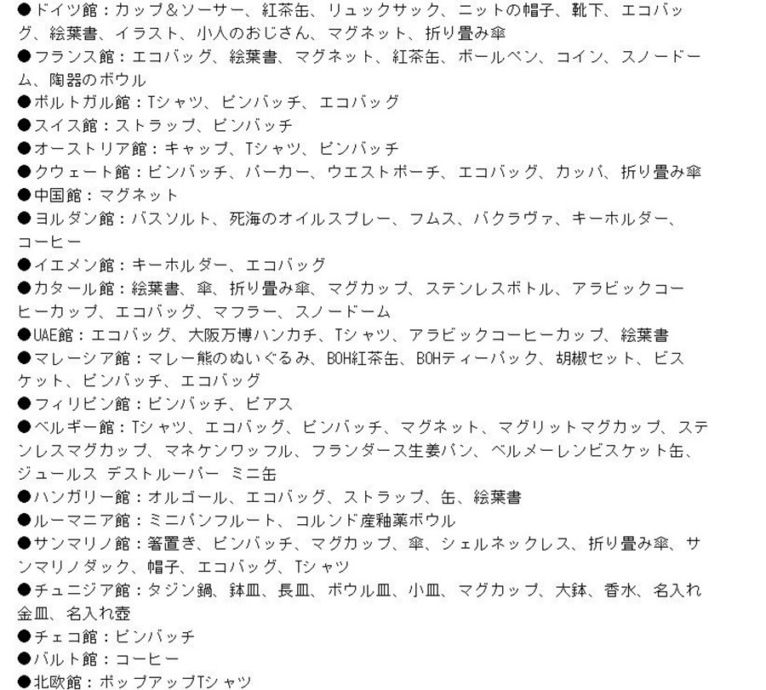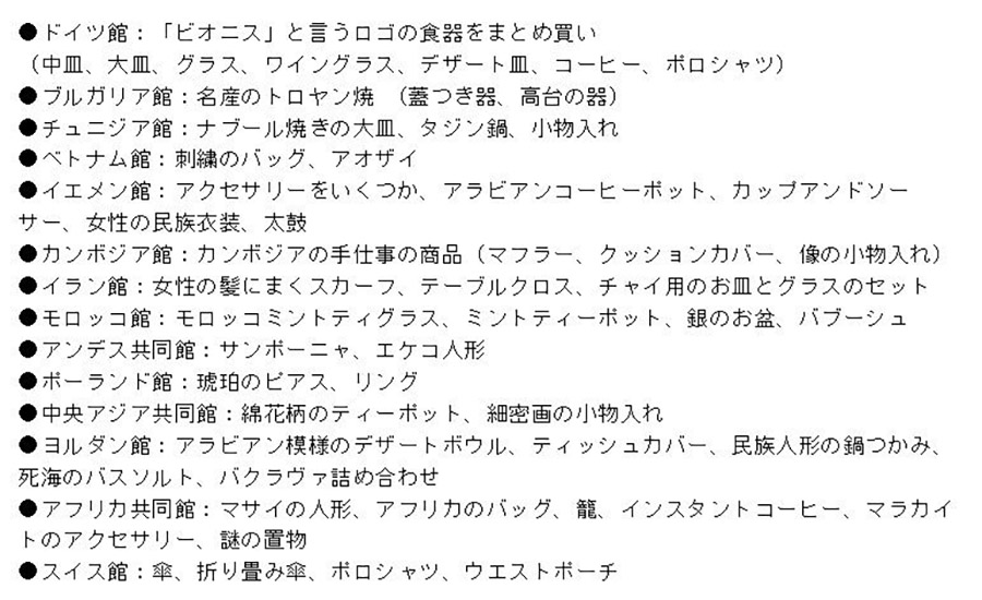 はい。例えば、ドイツ館だけでも、カップ&ソーサー、紅茶缶、リュックサック、ニットの帽子、靴下、エコバッグ、絵葉書、イラスト、小人のおじさん、マグネット、折りたたみ傘。チュニジア館で、タジン鍋、鉢皿、長皿、ボウル皿、小皿、マグカップ、大鉢、香水、名入れ金皿、名入れ壺…ちょっと書き出してみるとすごい数です。63のパビリオンやショップで、合計130点以上買っていました。