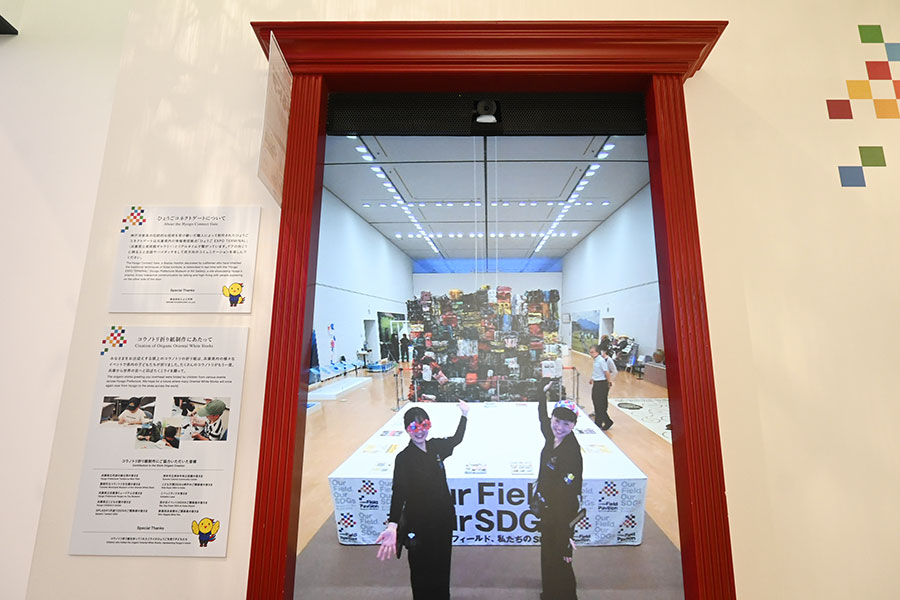 なかには、『大阪・関西万博』の会場の雰囲気を感じられる展示も。大きなピンクの扉の「繋がるドア」は、「関西パビリオン」兵庫県ゾーンとリアルタイムで通信している。取材当日も、兵庫県ゾーンに入っていく来場者の様子を見たり、ボランティアスタッフと交流できたりした。