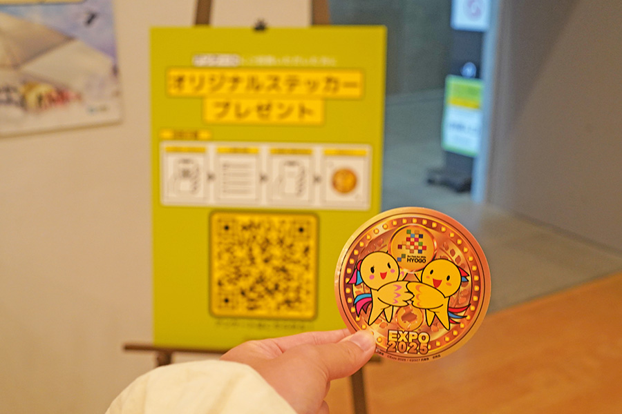 また、万博の各パビリオンやイベントでは、無料配布されるノベルティグッズが好評だが、「兵庫県立美術館」でも無料のプレゼントが充実。展示を体験したり、アンケートに回答したりすると、非売品のミャクミャクグッズや、兵庫県のマスコットキャラクター「はばタン」のアクリルマグネットやステッカーをもらうことができる。