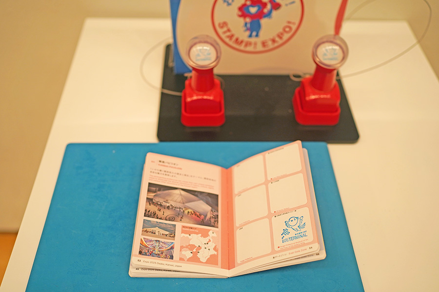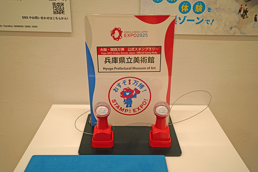 また、万博会場で人気の「スタンプ」も設置されている。「公式スタンプパスポート」は、各パビリオンのほかに、「関西パビリオン」に参加する9府県の「サテライト会場」にもスタンプを置く。兵庫県の「サテライト会場」は「兵庫県立美術館」で、休日にはスタンプの行列ができているという。