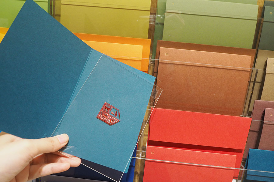 また子ども用ブランド「Itoya Kids」は全国初の独立コーナーを設け、オリジナル文具や布小物などを販売。さらに、特別感を盛り上げるサービスとして関西店舗に初導入されるのが、モチーフがあしらわれたアルファベット刻印をカードに箔押しするサービス。48色のカードと封筒の組み合わせオンリーワンな1枚が完成、箔のデザイン・色選びの過程も楽しめる(1枚・748円~)。