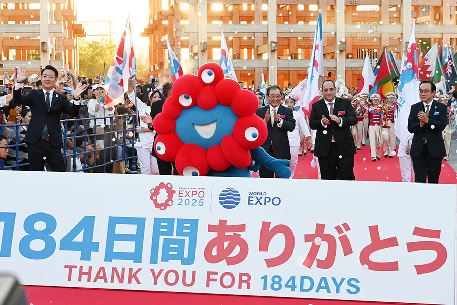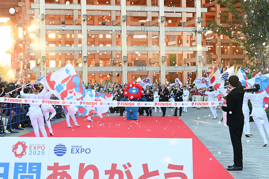 『大阪・関西万博』が10月13日に閉幕した。最終日にもさまざまな催しが会場内でおこなわれたが、ひときわ来場者が集まっていたのが「フラッグパレード」。167の国・地域や国際機関の旗を掲げるフラッグチームを先頭に、ミャクミャクをはじめとする大勢が、大屋根リングの下を約25分かけて行進した。