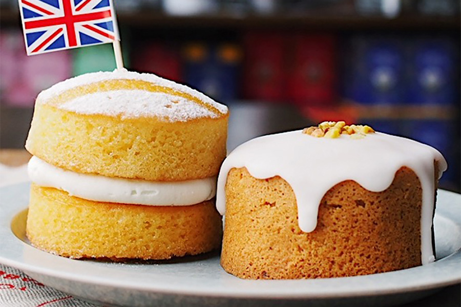 「英国展 2025」に登場する「メルローズアンドモーガン」のヴィクトリアケーキ(605円)、レモンピスタチオケーキ(648円)は各⽇各40点限り。PART2でのみ出店