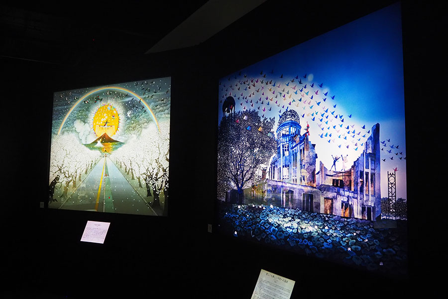 • 作品下に水を使った展示の『金閣寺』『銀閣寺』(中央)など幻想的な空間が広がる(C)Fujishiro Seiji Museum