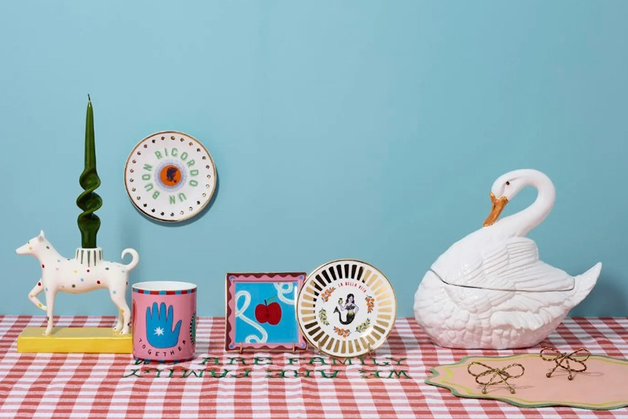 • 『イタリアフェア2025』に登場するキャンドルホルダー Baloo(17.5×8.5✕17.5cm6万9300円、現品限り)、ギンガムチェック we are family テーブルクロス(約150x250cm3万9600円、現品限り)など。祝祭広場「アールデコインテリア」にて